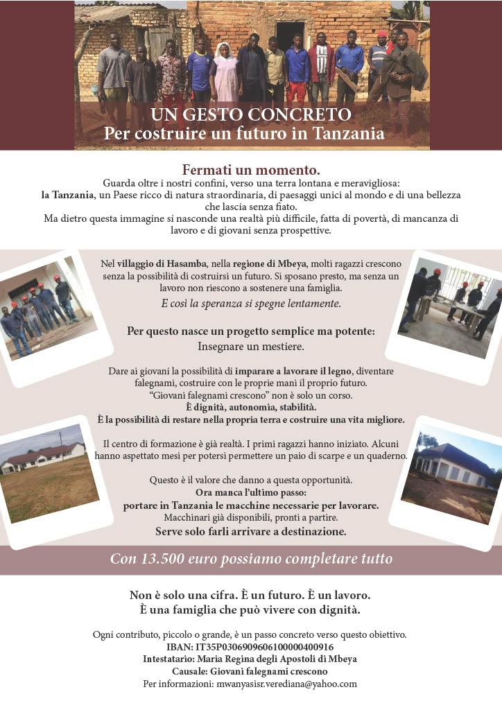 Una lodevole iniziativa volta ad offrire una opportunità di benessere socio economico di una collettivitò della Tanzania